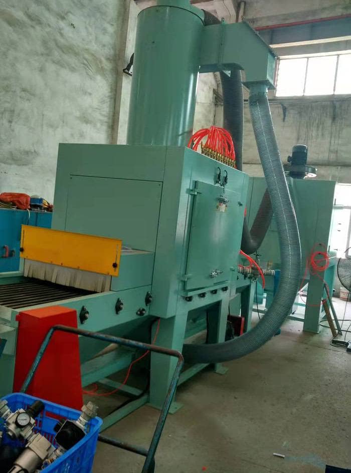 該設備由主機、旋風分離器、除塵箱、空氣壓縮系統(客戶自備)、電氣系統等組成。本機噴砂加工輸送線輸送速度和噴槍擺動速度均采用變頻調速,以滿足客戶對不同工件噴砂的要求。